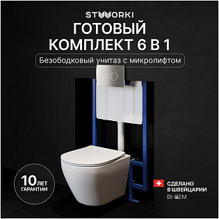 Унитаз подвесной Stworki "Готланд" S13401WH с инсталляцией Ewrika ProLT 0026-2020 и кнопкой 0040