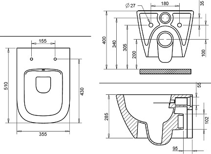 Унитаз Point "Меркурий" PN41831 с инсталляцией "Элемент" PN45120 с кнопкой "Виктория" PN44061BC