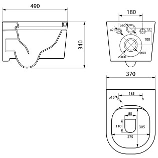 Унитаз подвесной Stworki "Готланд" S13401BK с инсталляцией Diwo 4501, с кнопкой смыва черной 7313