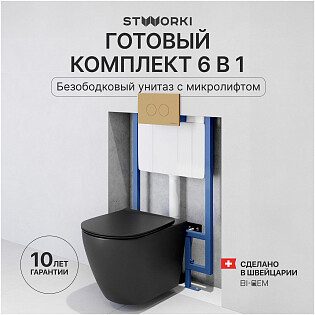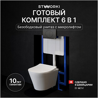 Унитаз с инсталляцией и кнопкой Stworki "Хальмстад" SETK2804-0606-001-1-6000, ProLT 0026-2020, 0041