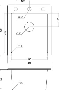 Мойка кухонная из искусственного мрамора прямоугольная 48х60 см уголь Domaci "Савона" QB 600