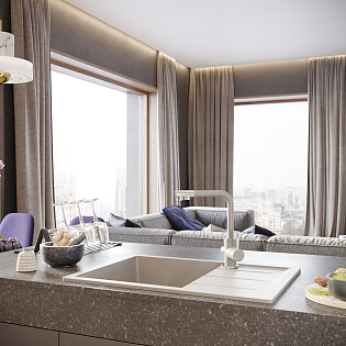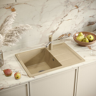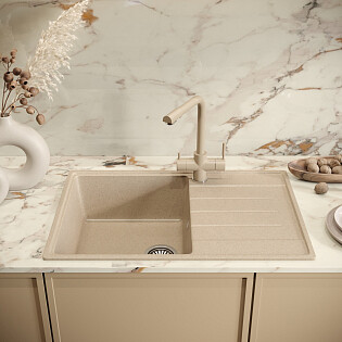 Мойка кухонная из искусственного мрамора квадратная 51 см бежевая Domaci "Римини" DG К-435