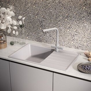 Мойка кухонная кварцевая прямоугольная 51х77 см белая Domaci "Римини" DG U-650