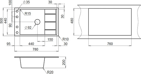 Мойка кухонная десерт Domaci "Солерно" DP 780 1,5 K-03