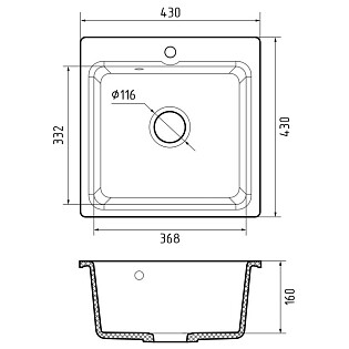 Кухонная мойка кварцевая квадратная черный металлик Granula KS-5002 шварц