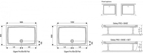 Душевой поддон из литого мрамора 100x80 см белый Ravak Gigant Pro Flat XA03A411010