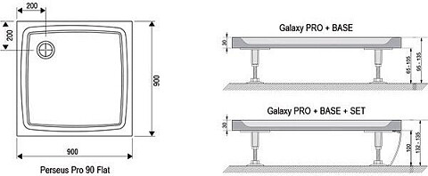Душевой поддон квадратный 90х90 см белый Ravak Perseus Pro Flat XA037711010