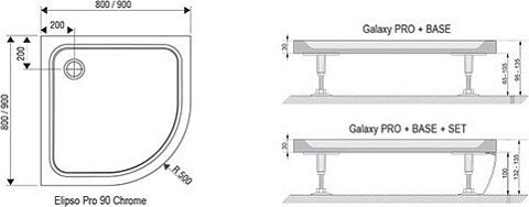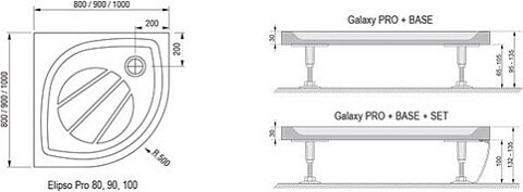 Душевой поддон из литого мрамора 80х80 см белый Ravak Elipso Pro Chrome XA244401010