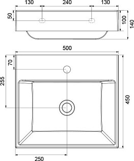 Раковина накладная из литьевого мрамора прямоугольная 45х50 см белая Ravak Natural 500 XJO01250000