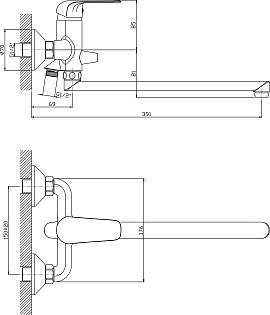 Смеситель для ванны с душем настенный черный Stworki "Молде" S23100BK