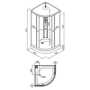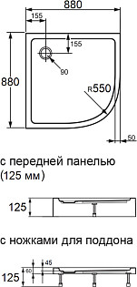 Душевая кабина четверть круга с высоким поддоном 80х80 см белая, черная Parly EC821