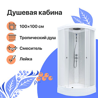 Душевая кабина четверть круга с низким поддоном 100х100 см белая Diwo "Новгород" Щ0000055613