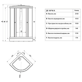 Душевая кабина четверть круга с глубоким поддоном 90х90 см градиент Triton "Лайт Б" Щ0000039801