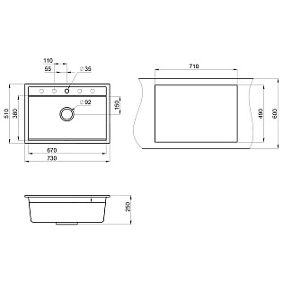 Мойка кухонная кварцевая прямоугольная черный металлик Granula KS-7301 шварц