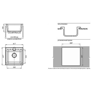 Мойка кухонная мраморная квадратная серая Granfest Practik P-420 серый