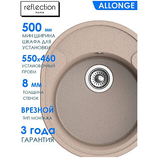 Мойка кухонная круглая бежевая Reflection Allonge RF0658BE