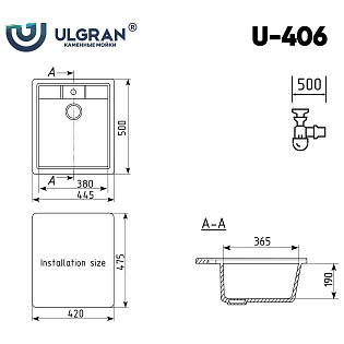 Мойка кухонная из искусственного мрамора прямоугольная черная Ulgran U-406-308