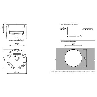 Мойка кухонная мраморная круглая черная Granfest Rondo R-510 черный