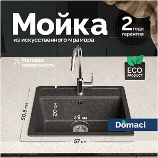 Мойка кухонная антрацит Domaci "Болонья" М-09-007