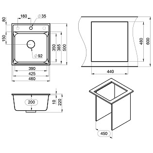 Мойка кухонная кварцевая черная Granula GR-6002 черный