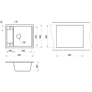 Мойка кухонная кварцевая черный металлик Granula GR-6002 шварц