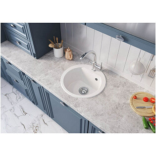 Кухонная мойка мраморная круглая 50 см ультра-белая Ulgran U-101-341