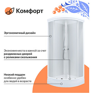 Душевая кабина четверть круга с низким поддоном 100х100 см белая Diwo "Новгород" Щ0000055613