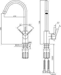 Смеситель для кухни с вращающимся изливом хром Domaci "Равенна" D11-001cr