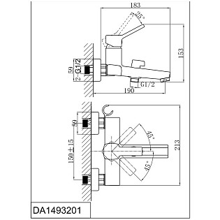 Смеситель для ванны однорычажный с душевым гарнитуром хром D&K Rhein Dusseldorf DA1493201