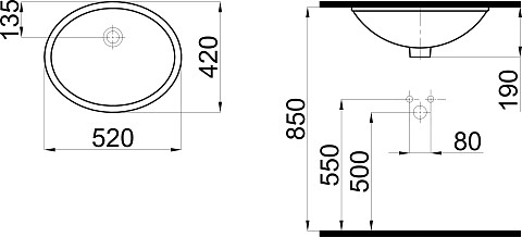 Раковина встраиваемая керамическая овальная 42х52 см белая Stworki K0001-0526-001-1-0000