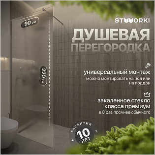 Душевая перегородка стеклянная матовая 90х220 см хром Stworki "Берген" MV-BE-90-CR-M