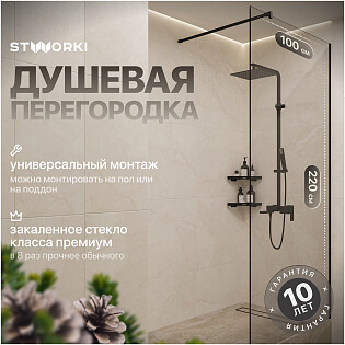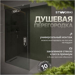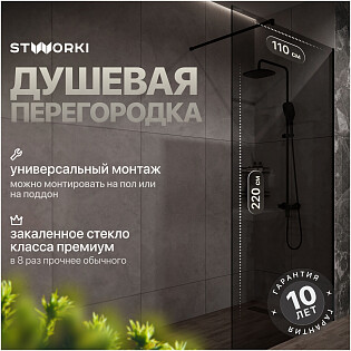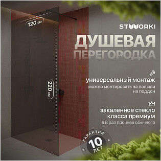 Душевая перегородка стеклянная тонированная 120 см черная Stworki "Хельсинки" MV-XE-120-BL-T