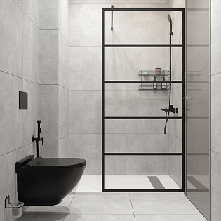 Душевая перегородка стеклянная тонированная 90 см черная Stworki "Берген" MV-BE-90-BL-T