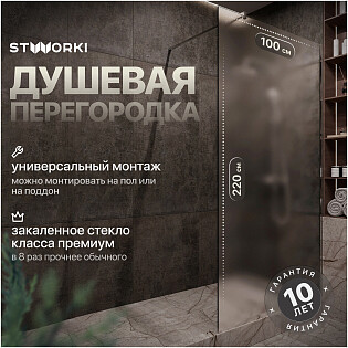 Душевая перегородка стеклянная матовая 110х220 см Stworki "Берген" MV-BE-110-CR-M