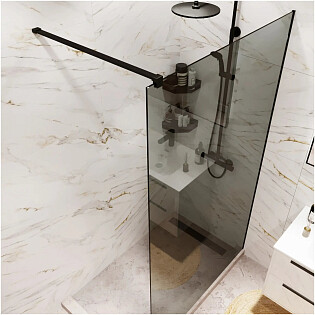 Душевая перегородка стеклянная 90х200 см тонированная, черная Reflection Walk In RX20090TBL-16