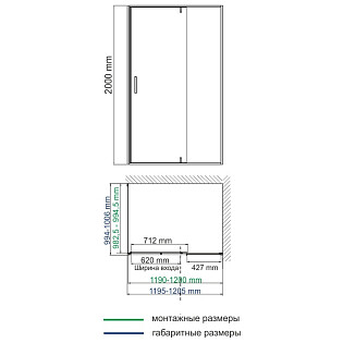 Душевая перегородка фиксированная с держателем 200х110 см черная Aquatek Walk in AQ WIW 11020BL
