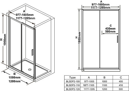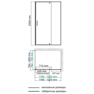 Душевая перегородка с держателем 100x200 см прозрачная Walk in AQ WIW Print 10020BL