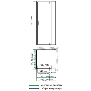 Душевая стенка прозрачная, черная Ravak Pivot PPS-90 90G70300Z1
