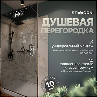 Душевая перегородка стеклянная 120 см черная, хром глянцевый Stworki "Хельсинки" MV-XE-120-CR-T
