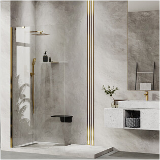 Душевая перегородка 200х90 см прозрачная, золото Wasserkraft Aisch 55W39
