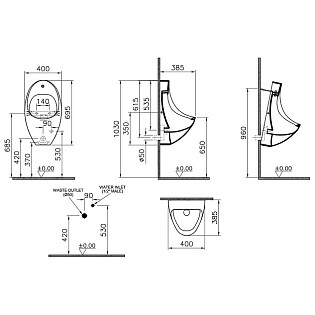 Писсуар подвесной с верхним подводом воды белый Vitra Arkitekt 6202B003-0198