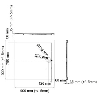 Душевой поддон из искусственного камня квадратный 90х90 см серый Wasserkraft Wiese 84T03