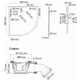 Душевой поддон из стеклопластика четверть круга 90х90 см белый Wasserkraft Main 41T01