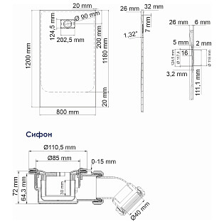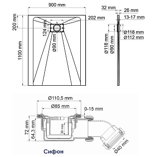 Поддон для душа с сифоном 160x90 см белый Stworki "Эстерсунд" 265003, 264998