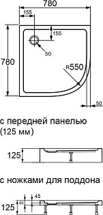 Поддон для душа акриловый четверть круга с сифоном 80х80 см белый Diwo "Коломна" KL01-080TCR-T