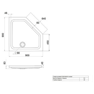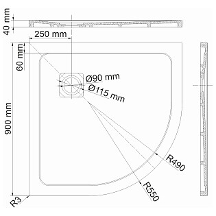 Поддон для душа акриловый четверть круга с сифоном 90х90 см белый Diwo "Коломна" KL01-090TCR-T