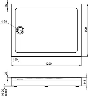 Душевой поддон из искусственного камня прямоугольный 90х120 см серый Creto Ares 1-0012