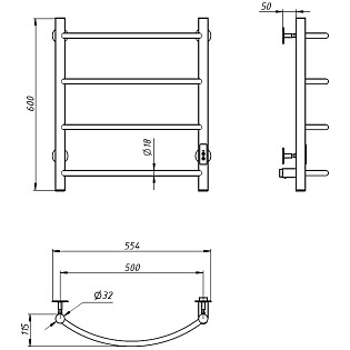Полотенцесушитель водяной 60х50 см хром Ewrika "Сафо" АС1