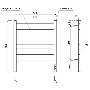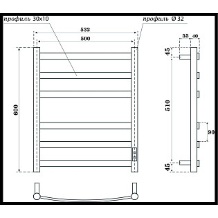 Полотенцесушитель электрический 60х40 см белый Ewrika "Пенелопа КВ7"