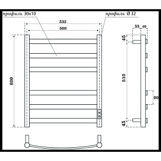 Полотенцесушитель электрический 50х60 см с диммером слева хром Point "Афина" PN04756 П4